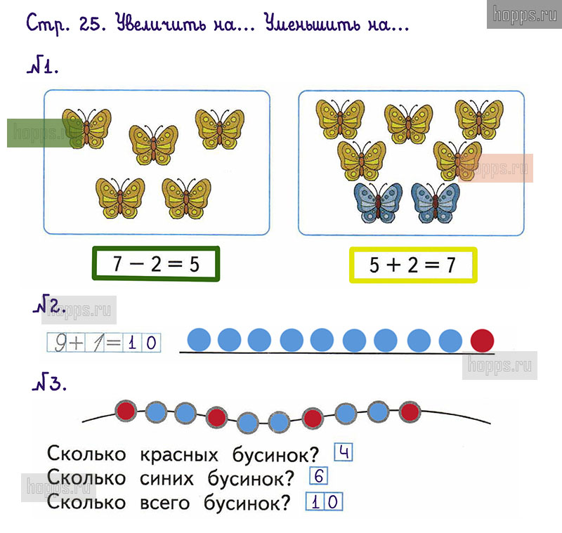 Подробные ответы к заданиям, расположенным на 25 странице 1 части рабочей тетради по математике авторов М.И. Моро, С.И. Волкова для учащихся 1 класса.