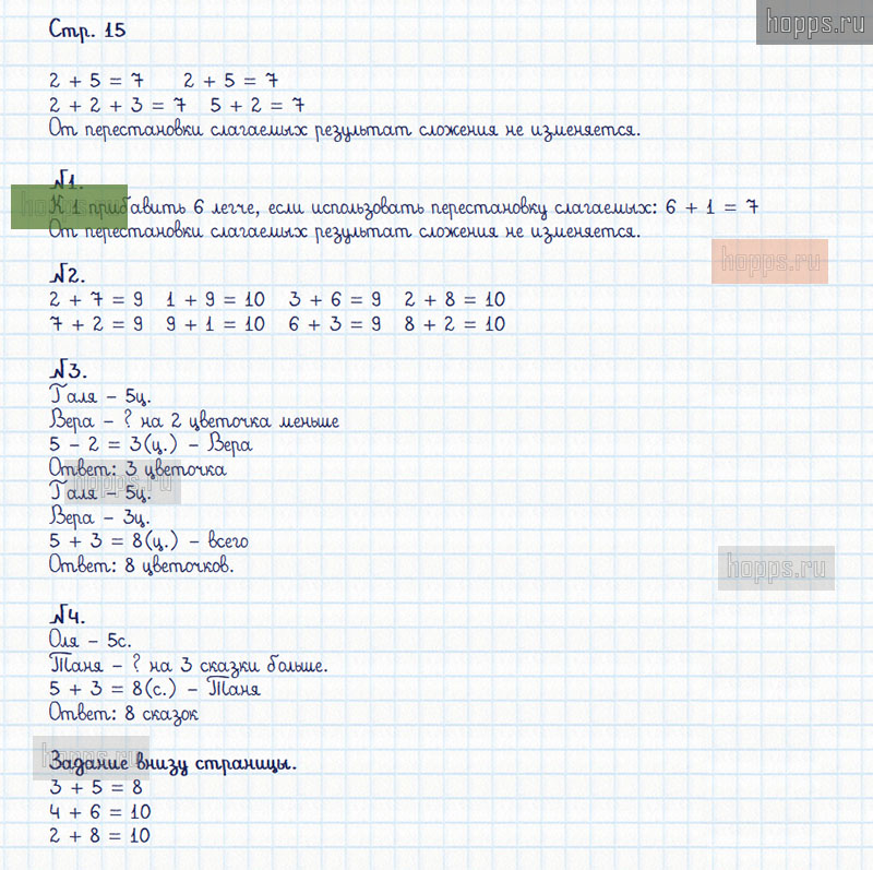 Подробные ответы к заданиям, расположенным на 15 странице 2 части рабочей тетради по математике авторов М.И. Моро, С.И. Волкова для учащихся 1 класса.