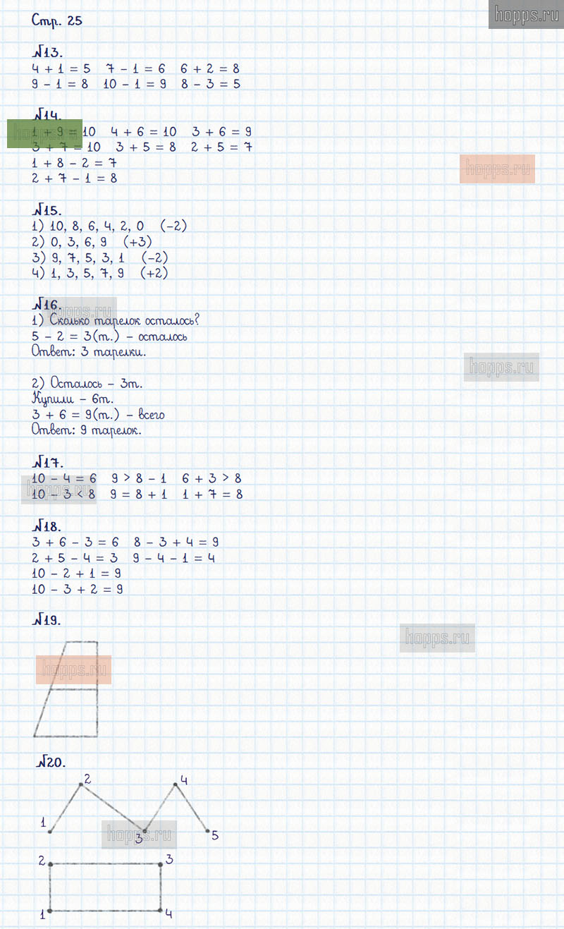 Подробные ответы к заданиям, расположенным на 25 странице 2 части рабочей тетради по математике авторов М.И. Моро, С.И. Волкова для учащихся 1 класса.
