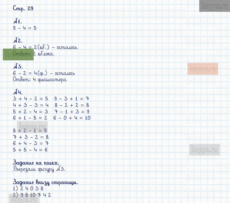 Подробные ответы к заданиям, расположенным на 29 странице 2 части рабочей тетради по математике авторов М.И. Моро, С.И. Волкова для учащихся 1 класса.