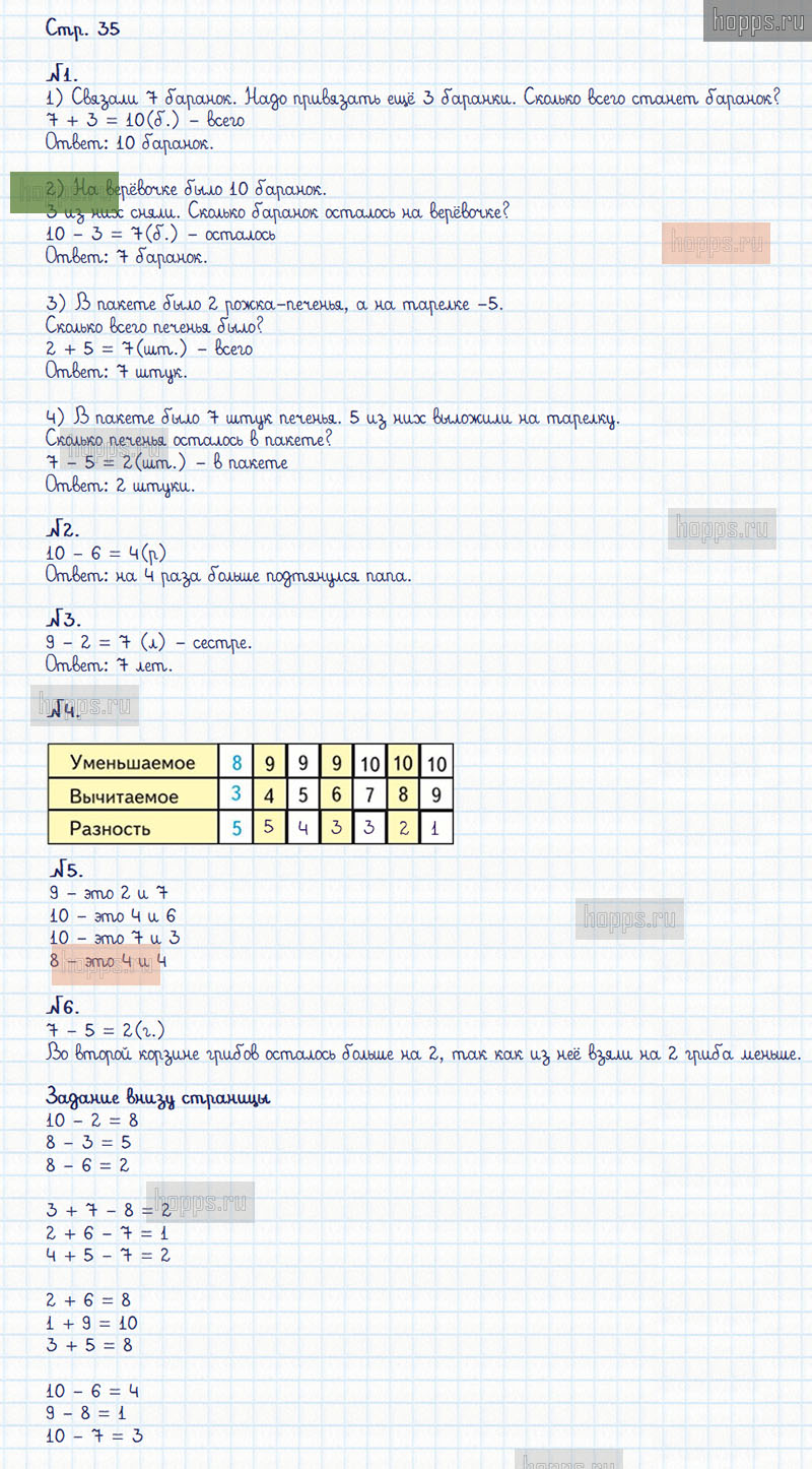 Подробные ответы к заданиям, расположенным на 35 странице 2 части рабочей тетради по математике авторов М.И. Моро, С.И. Волкова для учащихся 1 класса.