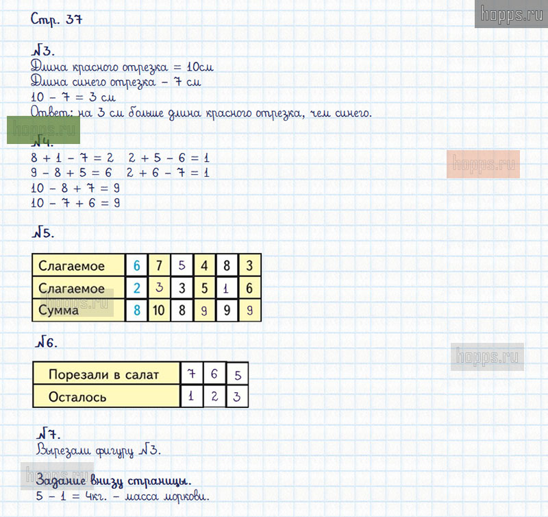 Подробные ответы к заданиям, расположенным на 37 странице 2 части рабочей тетради по математике авторов М.И. Моро, С.И. Волкова для учащихся 1 класса.