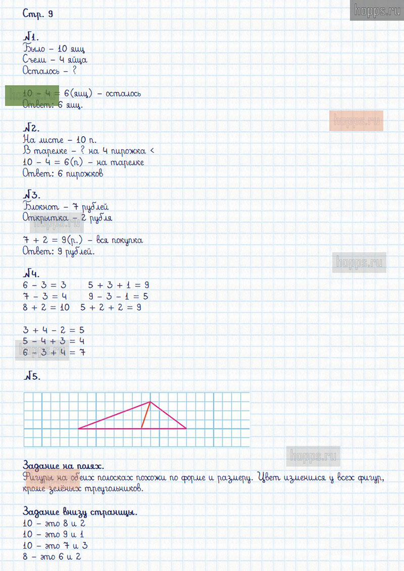 Подробные ответы к заданиям, расположенным на 9 странице 2 части рабочей тетради по математике авторов М.И. Моро, С.И. Волкова для учащихся 1 класса.