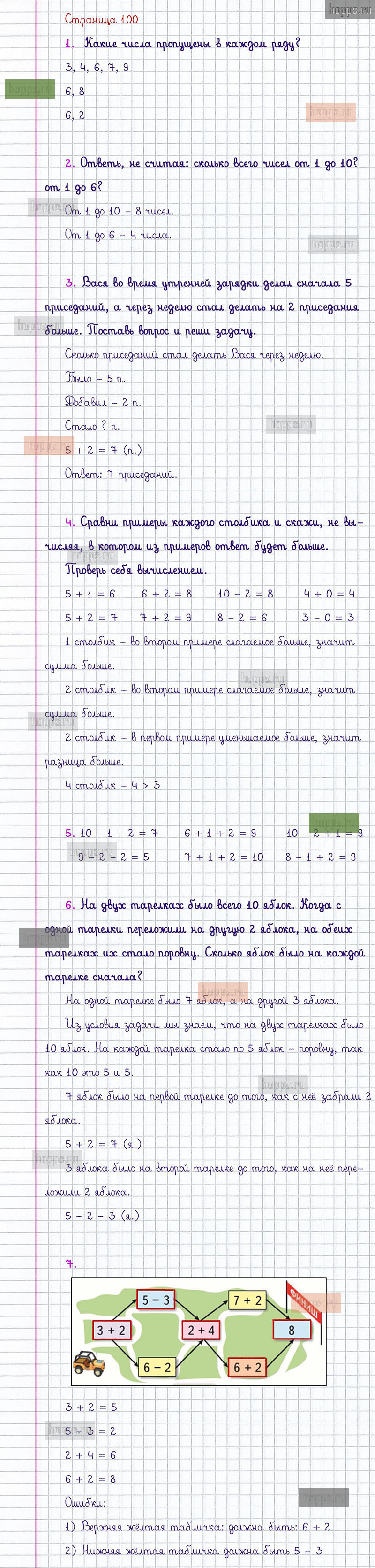 Подробные ответы к заданиям, расположенным на 100 странице 1 части учебника по математике авторов М.И. Моро, С.И. Волкова, С.В. Степанова для учащихся 1 класса.