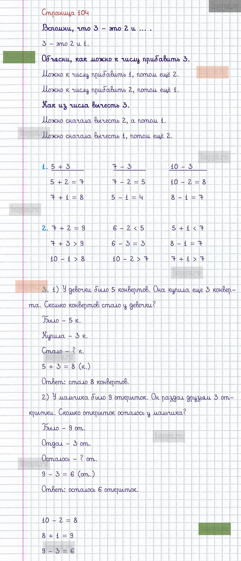 Подробные ответы к заданиям, расположенным на 104 странице 1 части учебника по математике авторов М.И. Моро, С.И. Волкова, С.В. Степанова для учащихся 1 класса.