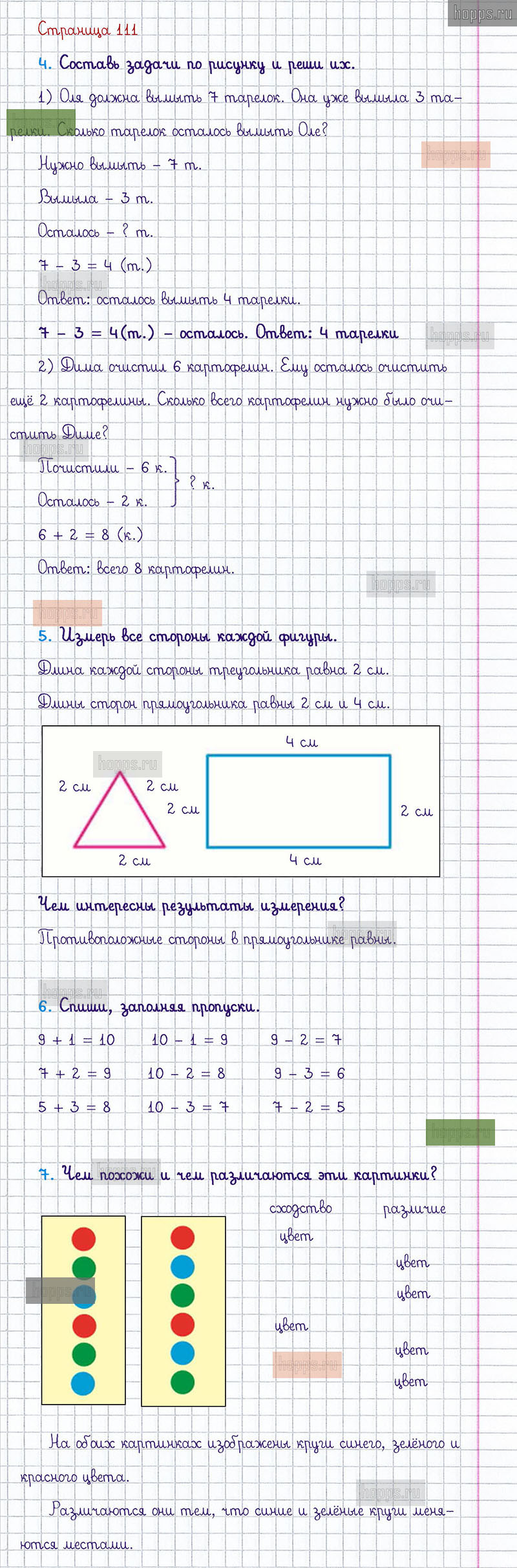 Подробные ответы к заданиям, расположенным на 111 странице 1 части учебника по математике авторов М.И. Моро, С.И. Волкова, С.В. Степанова для учащихся 1 класса.
