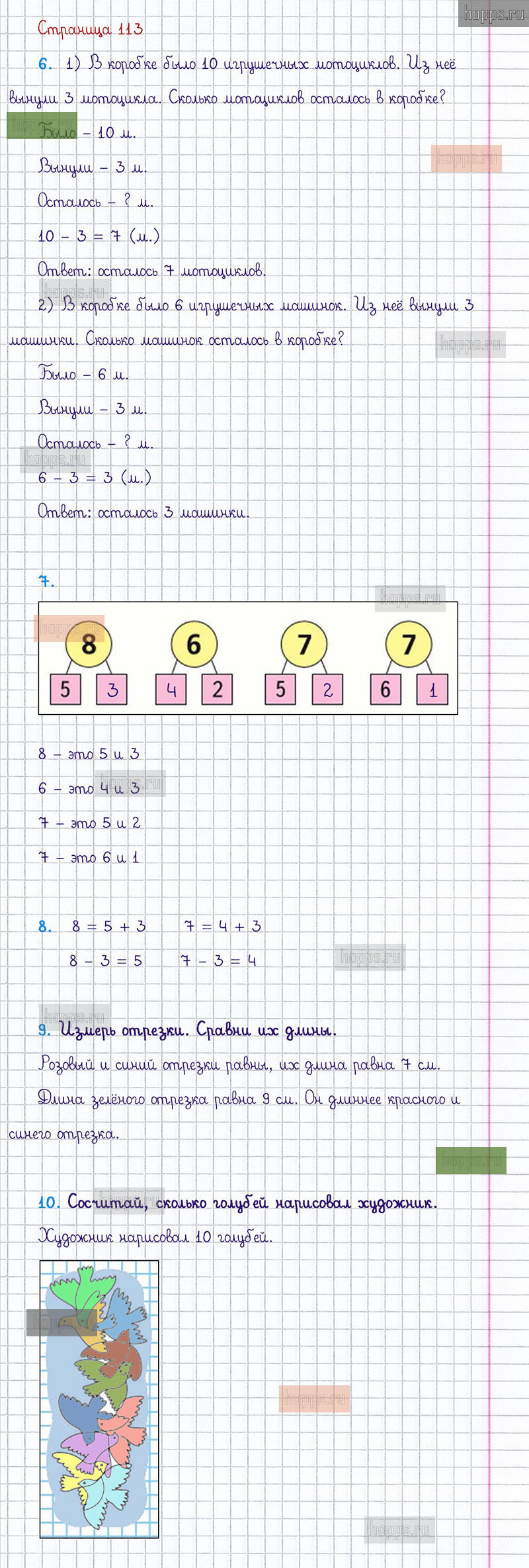 Подробные ответы к заданиям, расположенным на 113 странице 1 части учебника по математике авторов М.И. Моро, С.И. Волкова, С.В. Степанова для учащихся 1 класса.