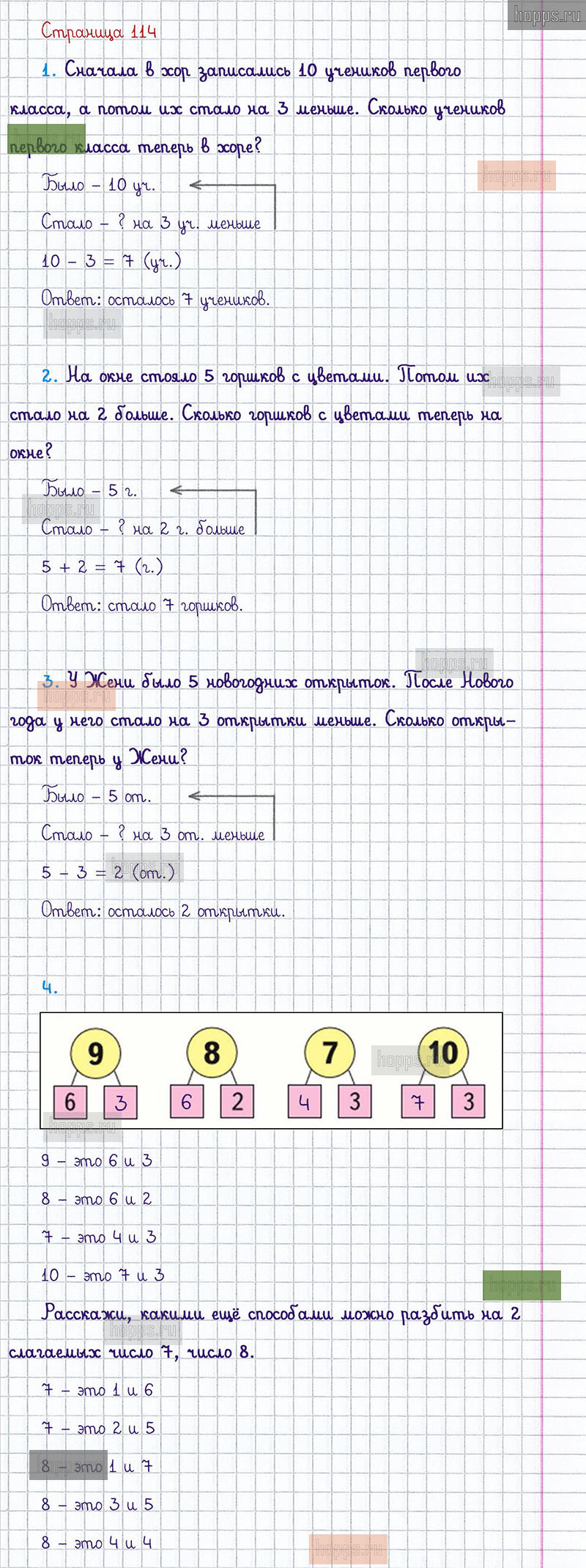 Подробные ответы к заданиям, расположенным на 114 странице 1 части учебника по математике авторов М.И. Моро, С.И. Волкова, С.В. Степанова для учащихся 1 класса.