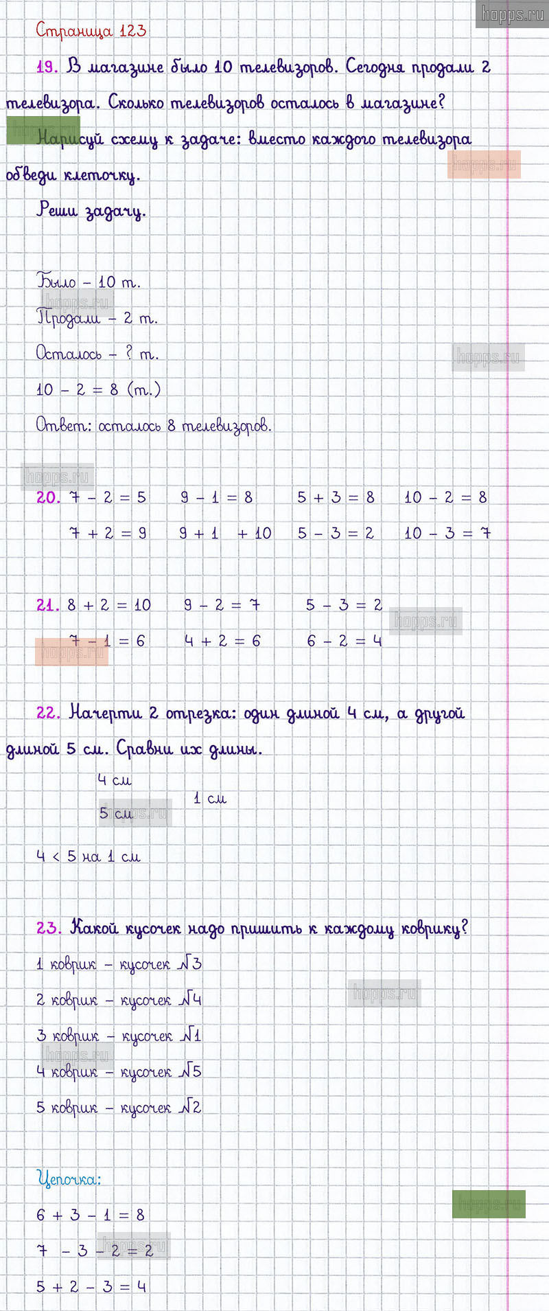 Подробные ответы к заданиям, расположенным на 123 странице 1 части учебника по математике авторов М.И. Моро, С.И. Волкова, С.В. Степанова для учащихся 1 класса.