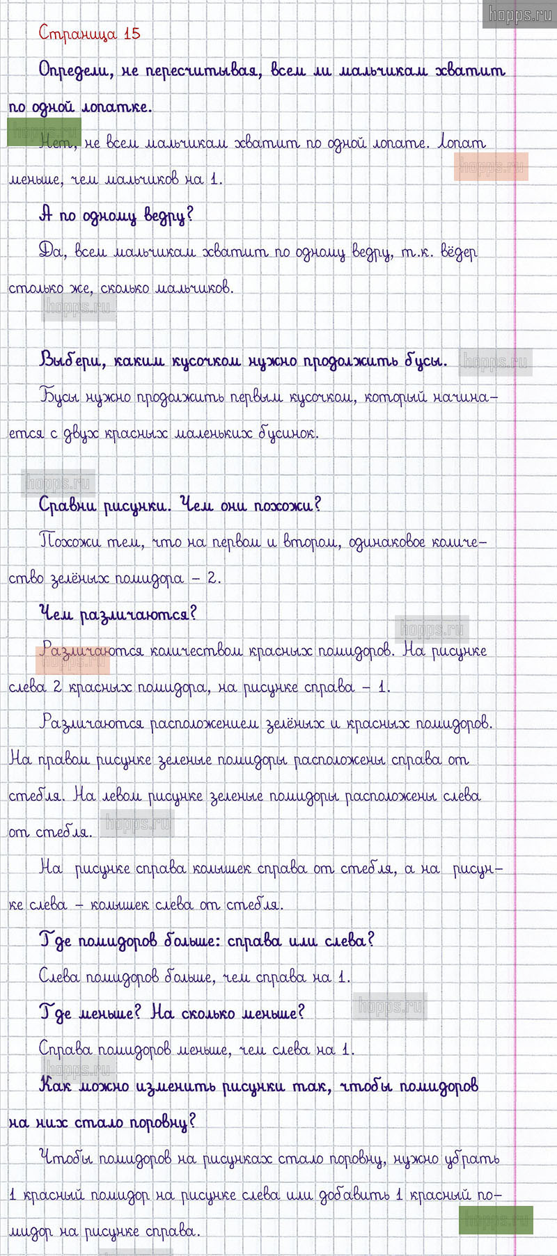 Подробные ответы к заданиям, расположенным на 15 странице 1 части учебника по математике авторов М.И. Моро, С.И. Волкова, С.В. Степанова для учащихся 1 класса.