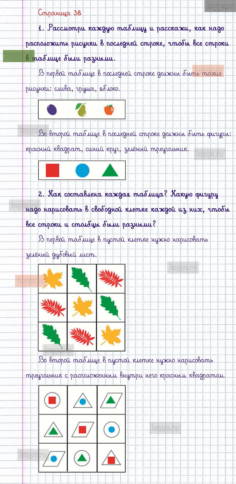 Подробные ответы к заданиям, расположенным на 38 странице 1 части учебника по математике авторов М.И. Моро, С.И. Волкова, С.В. Степанова для учащихся 1 класса.