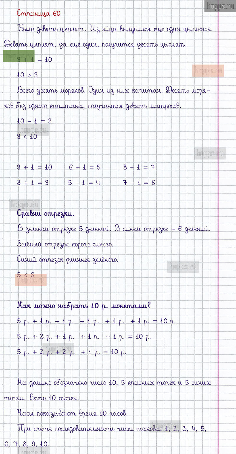 Подробные ответы к заданиям, расположенным на 60 странице 1 части учебника по математике авторов М.И. Моро, С.И. Волкова, С.В. Степанова для учащихся 1 класса.