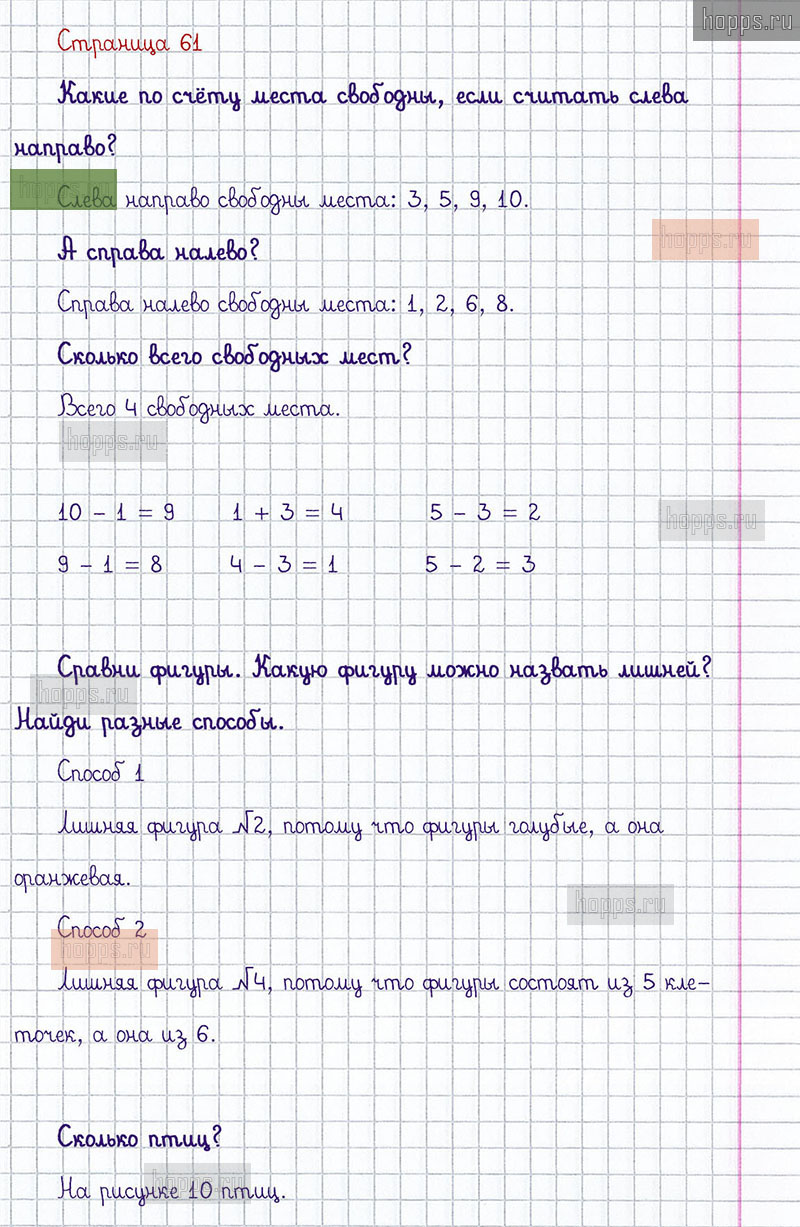 Подробные ответы к заданиям, расположенным на 61 странице 1 части учебника по математике авторов М.И. Моро, С.И. Волкова, С.В. Степанова для учащихся 1 класса.