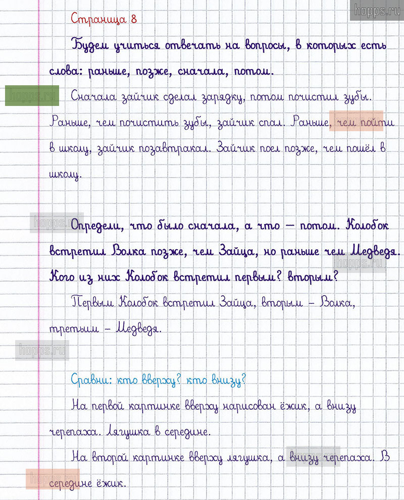 Подробные ответы к заданиям, расположенным на 8 странице 1 части учебника по математике авторов М.И. Моро, С.И. Волкова, С.В. Степанова для учащихся 1 класса.