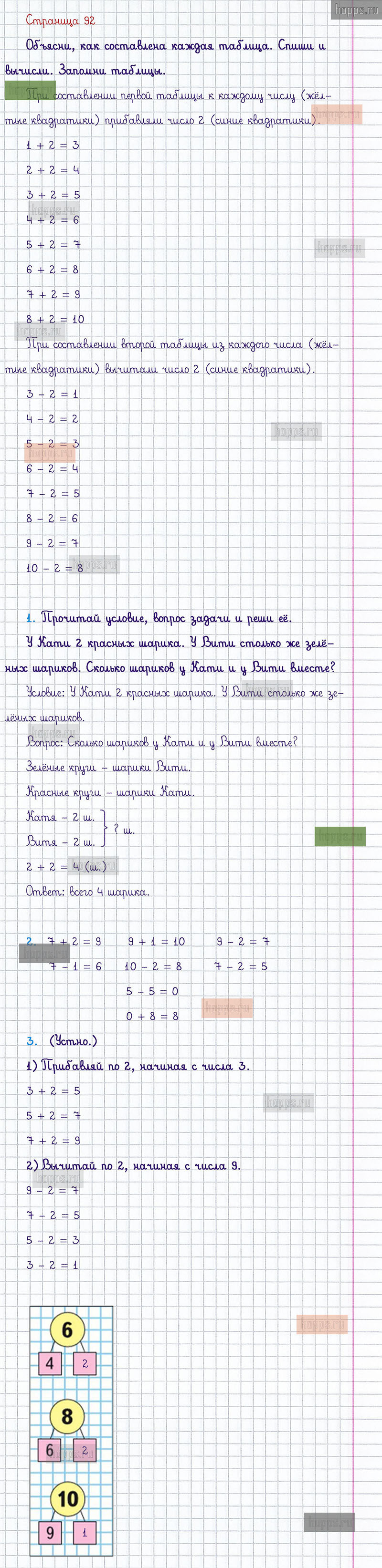 Подробные ответы к заданиям, расположенным на 92 странице 1 части учебника по математике авторов М.И. Моро, С.И. Волкова, С.В. Степанова для учащихся 1 класса.
