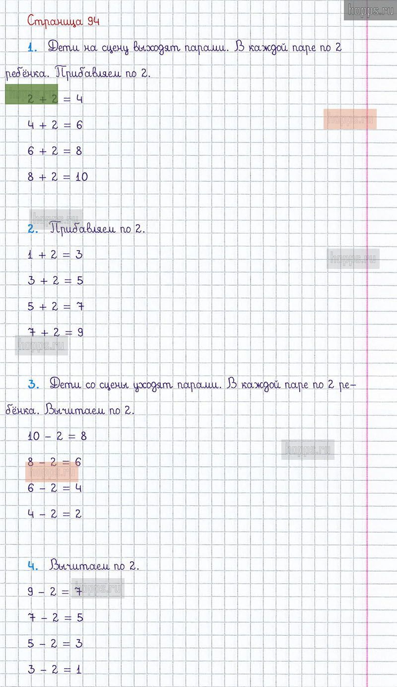 Подробные ответы к заданиям, расположенным на 94 странице 1 части учебника по математике авторов М.И. Моро, С.И. Волкова, С.В. Степанова для учащихся 1 класса.