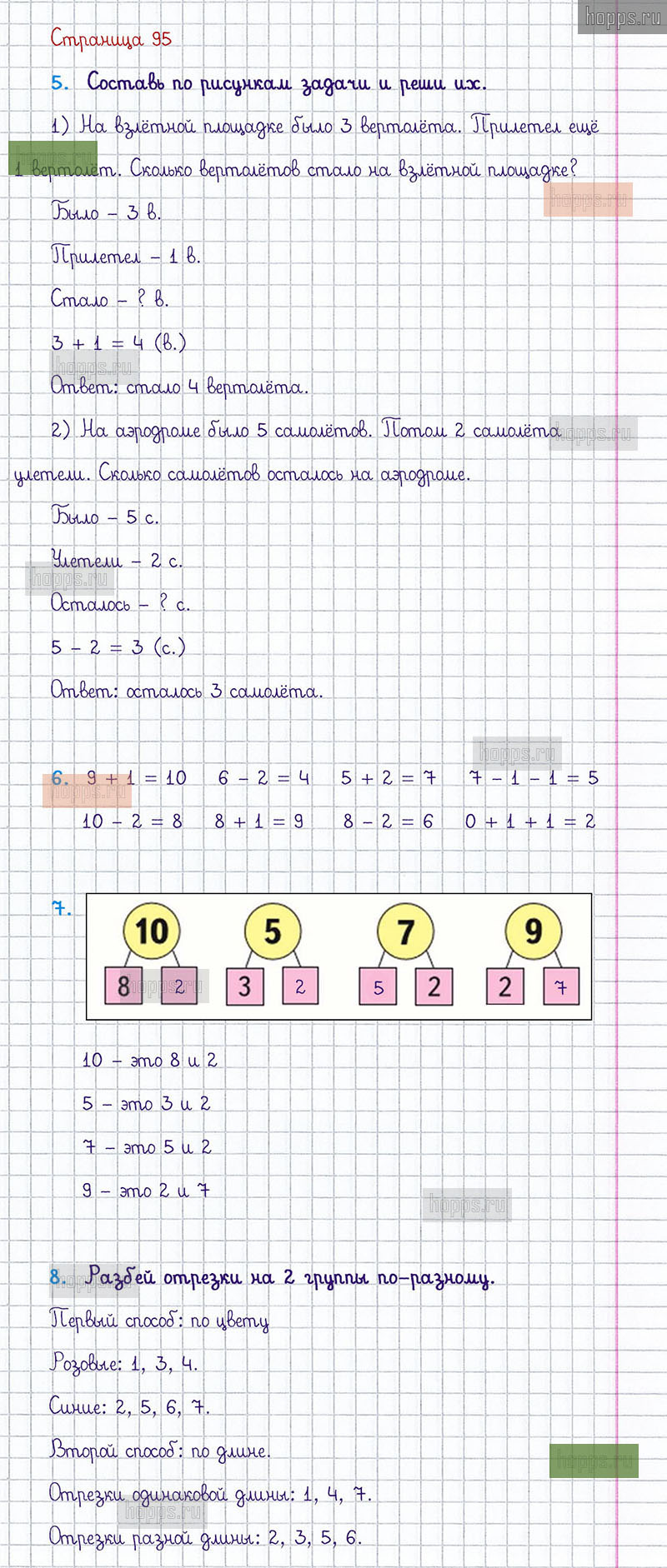 Подробные ответы к заданиям, расположенным на 95 странице 1 части учебника по математике авторов М.И. Моро, С.И. Волкова, С.В. Степанова для учащихся 1 класса.