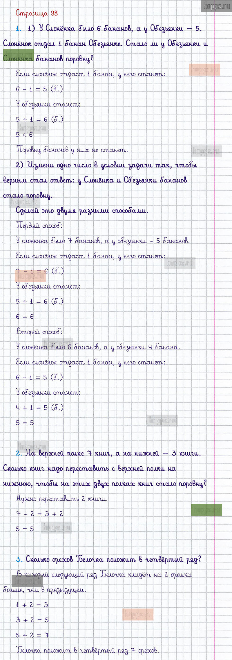 Подробные ответы к заданиям, расположенным на 98 странице 1 части учебника по математике авторов М.И. Моро, С.И. Волкова, С.В. Степанова для учащихся 1 класса.