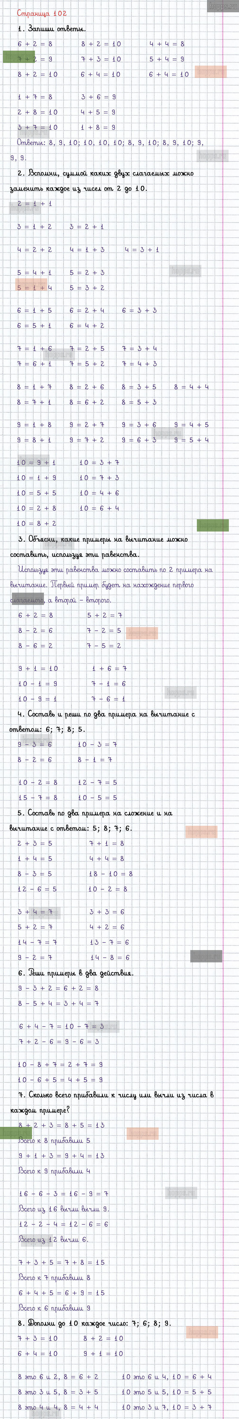Подробные ответы к заданиям, расположенным на 102 странице 2 части учебника по математике авторов М.И. Моро, С.И. Волкова, С.В. Степанова для учащихся 1 класса.