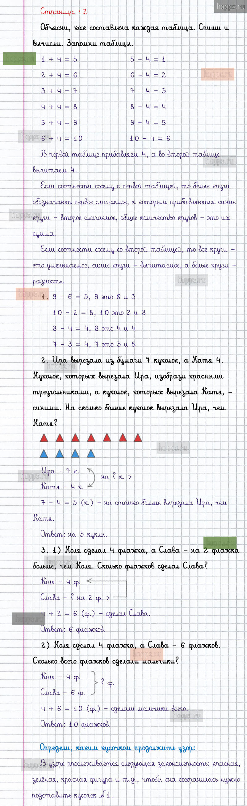 Подробные ответы к заданиям, расположенным на 12 странице 2 части учебника по математике авторов М.И. Моро, С.И. Волкова, С.В. Степанова для учащихся 1 класса.