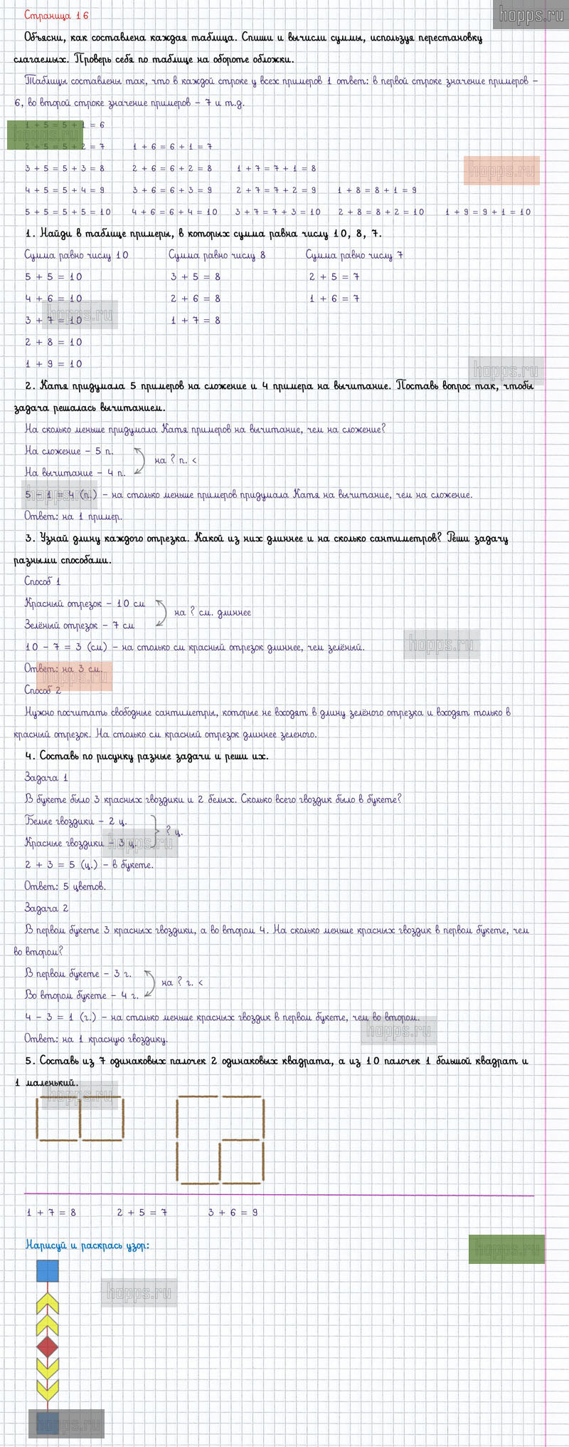 Подробные ответы к заданиям, расположенным на 16 странице 2 части учебника по математике авторов М.И. Моро, С.И. Волкова, С.В. Степанова для учащихся 1 класса.