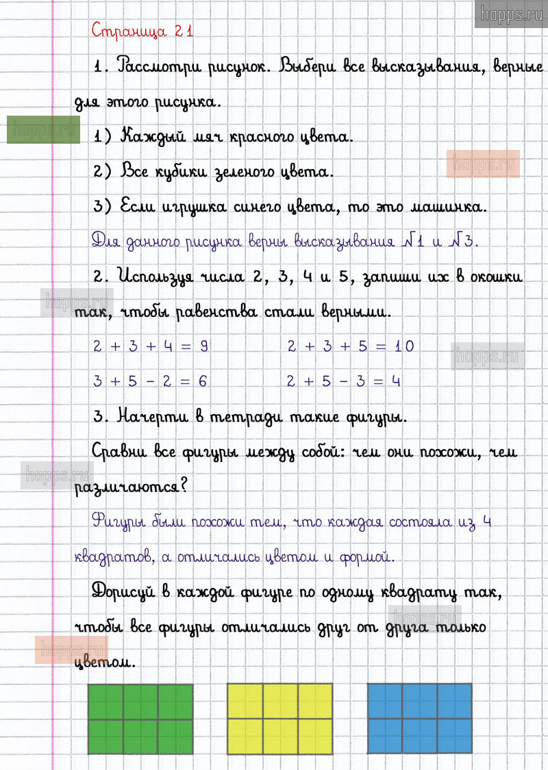 Подробные ответы к заданиям, расположенным на 21 странице 2 части учебника по математике авторов М.И. Моро, С.И. Волкова, С.В. Степанова для учащихся 1 класса.