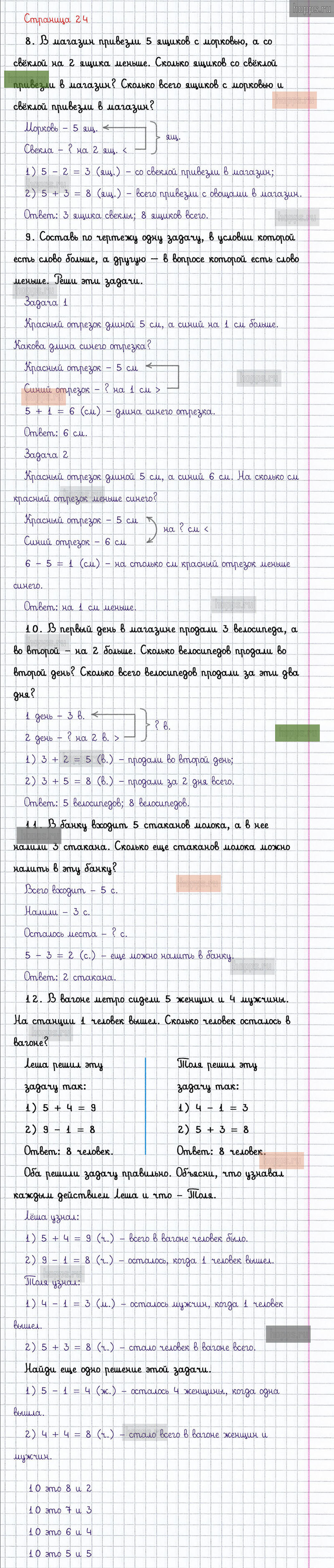 Подробные ответы к заданиям, расположенным на 24 странице 2 части учебника по математике авторов М.И. Моро, С.И. Волкова, С.В. Степанова для учащихся 1 класса.