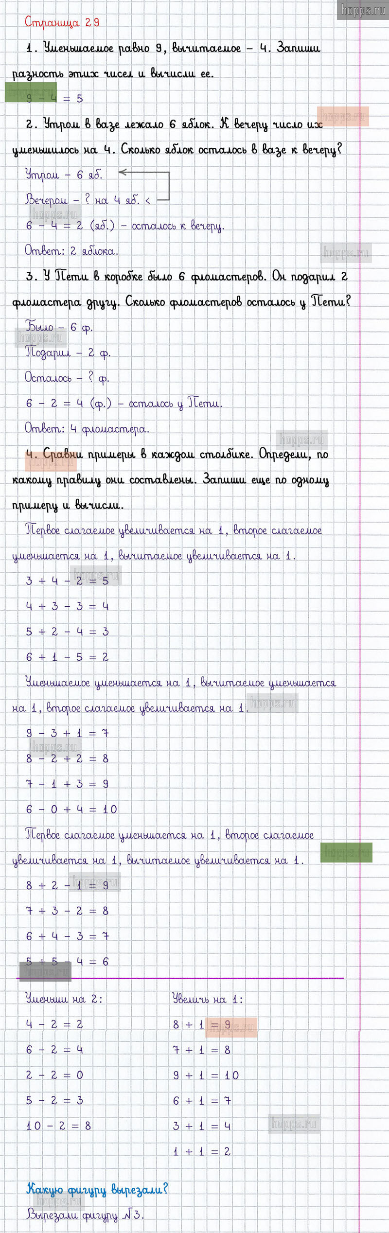 Подробные ответы к заданиям, расположенным на 29 странице 2 части учебника по математике авторов М.И. Моро, С.И. Волкова, С.В. Степанова для учащихся 1 класса.