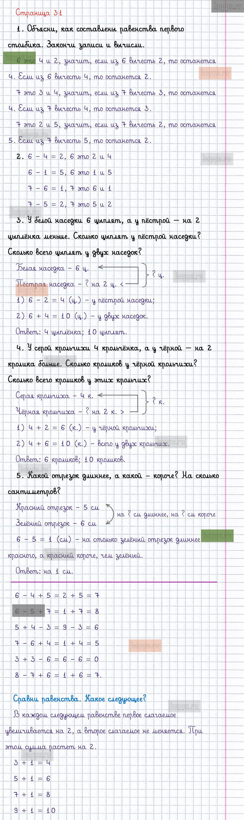 Подробные ответы к заданиям, расположенным на 31 странице 2 части учебника по математике авторов М.И. Моро, С.И. Волкова, С.В. Степанова для учащихся 1 класса.
