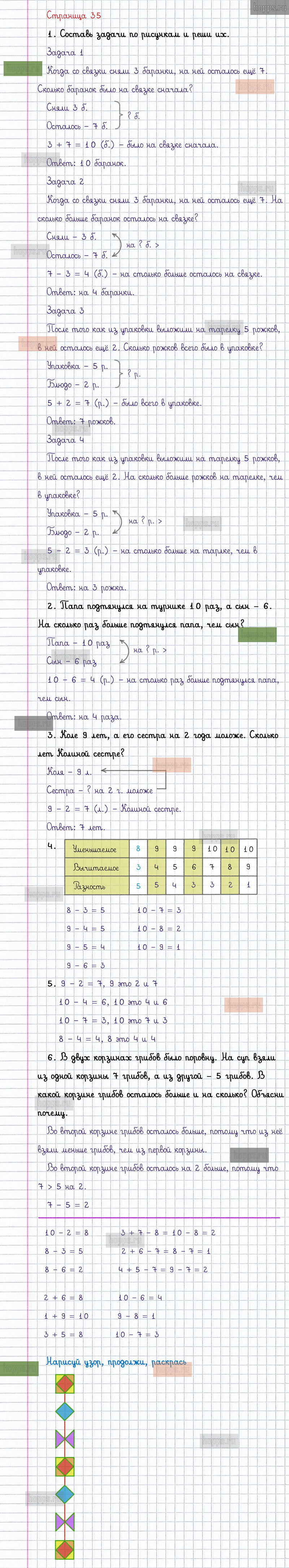 Подробные ответы к заданиям, расположенным на 35 странице 2 части учебника по математике авторов М.И. Моро, С.И. Волкова, С.В. Степанова для учащихся 1 класса.