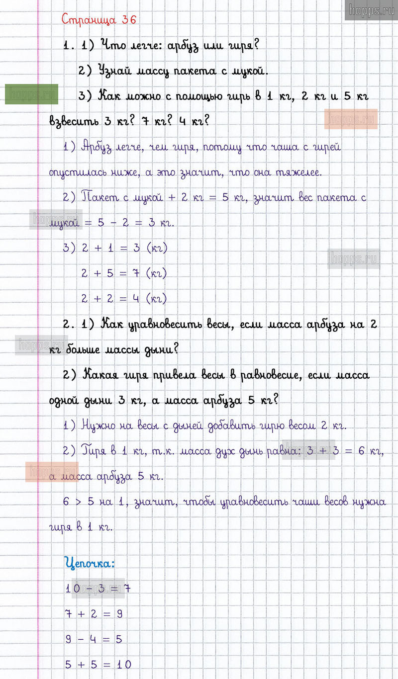 Подробные ответы к заданиям, расположенным на 36 странице 2 части учебника по математике авторов М.И. Моро, С.И. Волкова, С.В. Степанова для учащихся 1 класса.