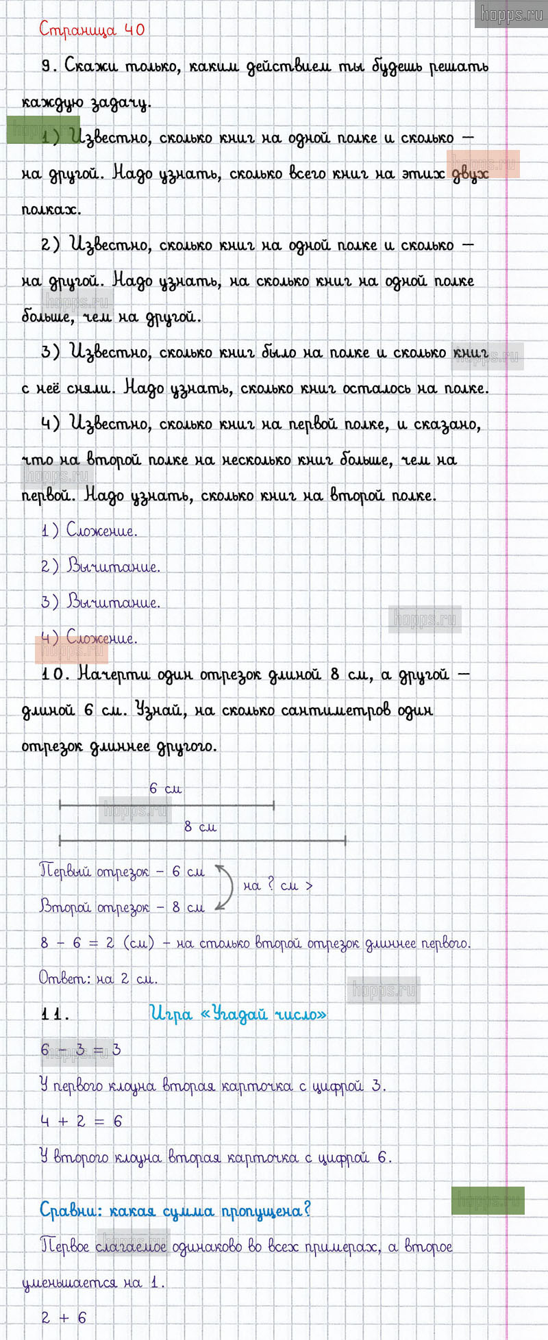Подробные ответы к заданиям, расположенным на 40 странице 2 части учебника по математике авторов М.И. Моро, С.И. Волкова, С.В. Степанова для учащихся 1 класса.