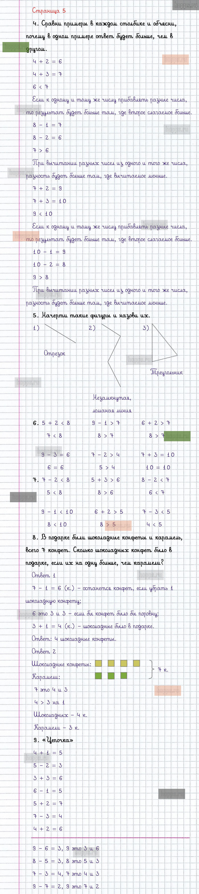 Подробные ответы к заданиям, расположенным на 5 странице 2 части учебника по математике авторов М.И. Моро, С.И. Волкова, С.В. Степанова для учащихся 1 класса.