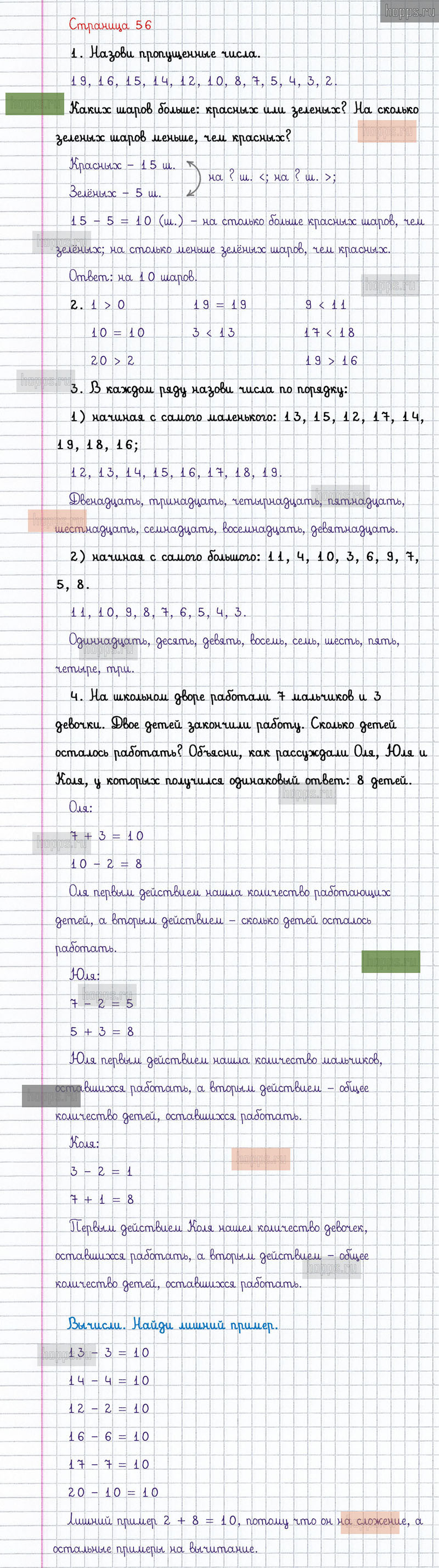 Подробные ответы к заданиям, расположенным на 56 странице 2 части учебника по математике авторов М.И. Моро, С.И. Волкова, С.В. Степанова для учащихся 1 класса.