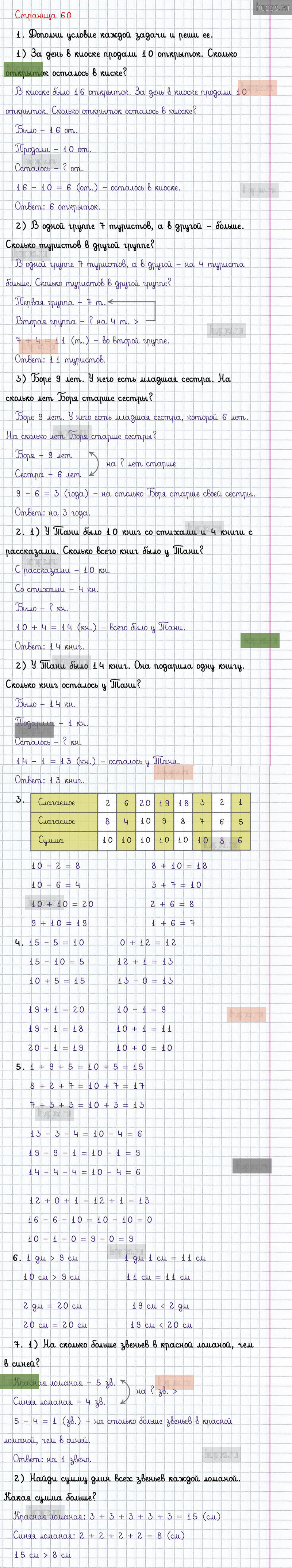 Подробные ответы к заданиям, расположенным на 60 странице 2 части учебника по математике авторов М.И. Моро, С.И. Волкова, С.В. Степанова для учащихся 1 класса.