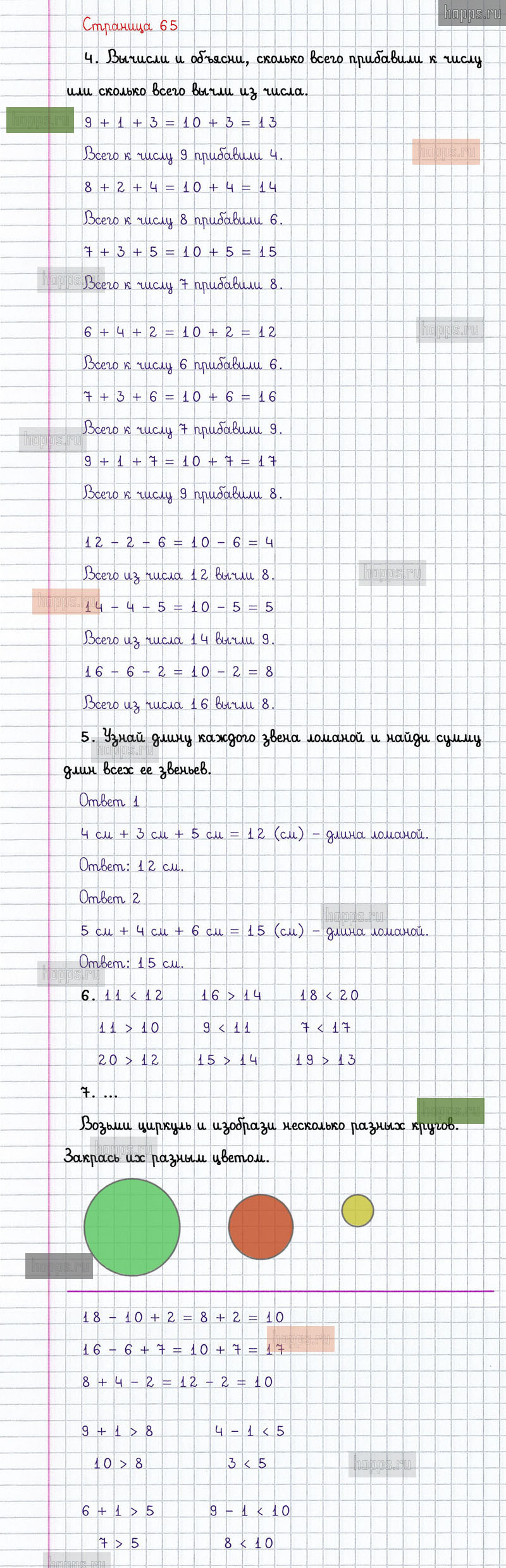 Подробные ответы к заданиям, расположенным на 65 странице 2 части учебника по математике авторов М.И. Моро, С.И. Волкова, С.В. Степанова для учащихся 1 класса.