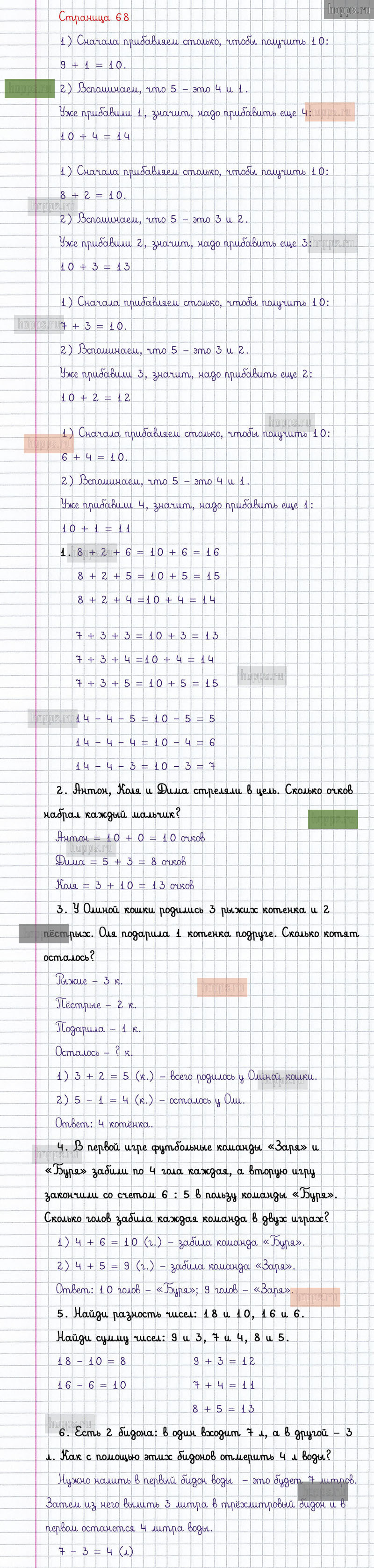 Подробные ответы к заданиям, расположенным на 68 странице 2 части учебника по математике авторов М.И. Моро, С.И. Волкова, С.В. Степанова для учащихся 1 класса.