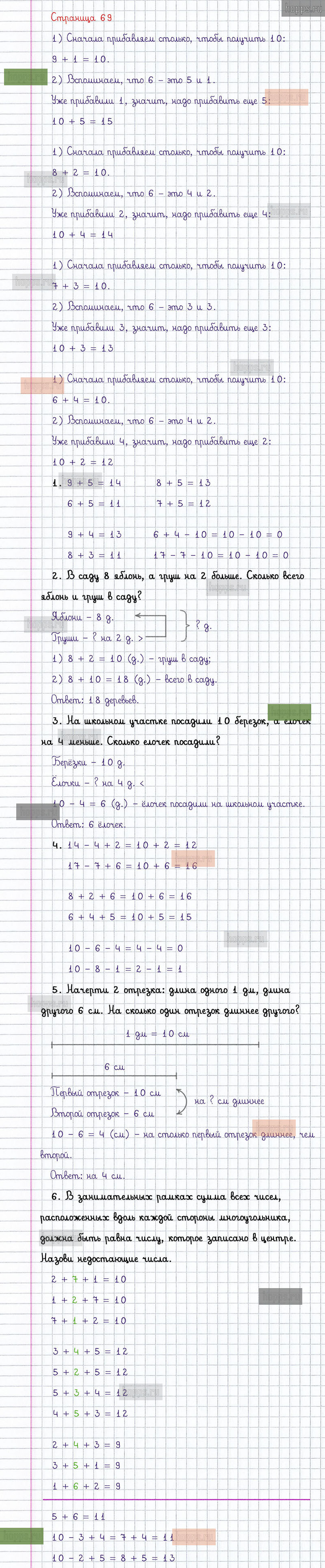 Подробные ответы к заданиям, расположенным на 69 странице 2 части учебника по математике авторов М.И. Моро, С.И. Волкова, С.В. Степанова для учащихся 1 класса.