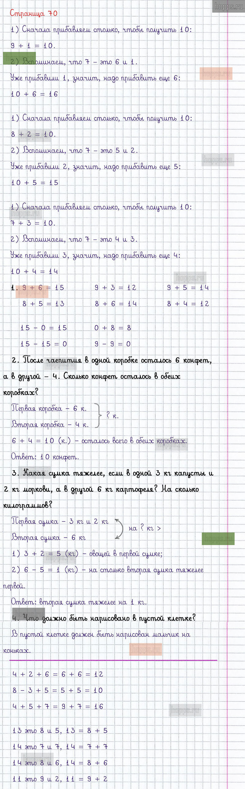 Подробные ответы к заданиям, расположенным на 70 странице 2 части учебника по математике авторов М.И. Моро, С.И. Волкова, С.В. Степанова для учащихся 1 класса.