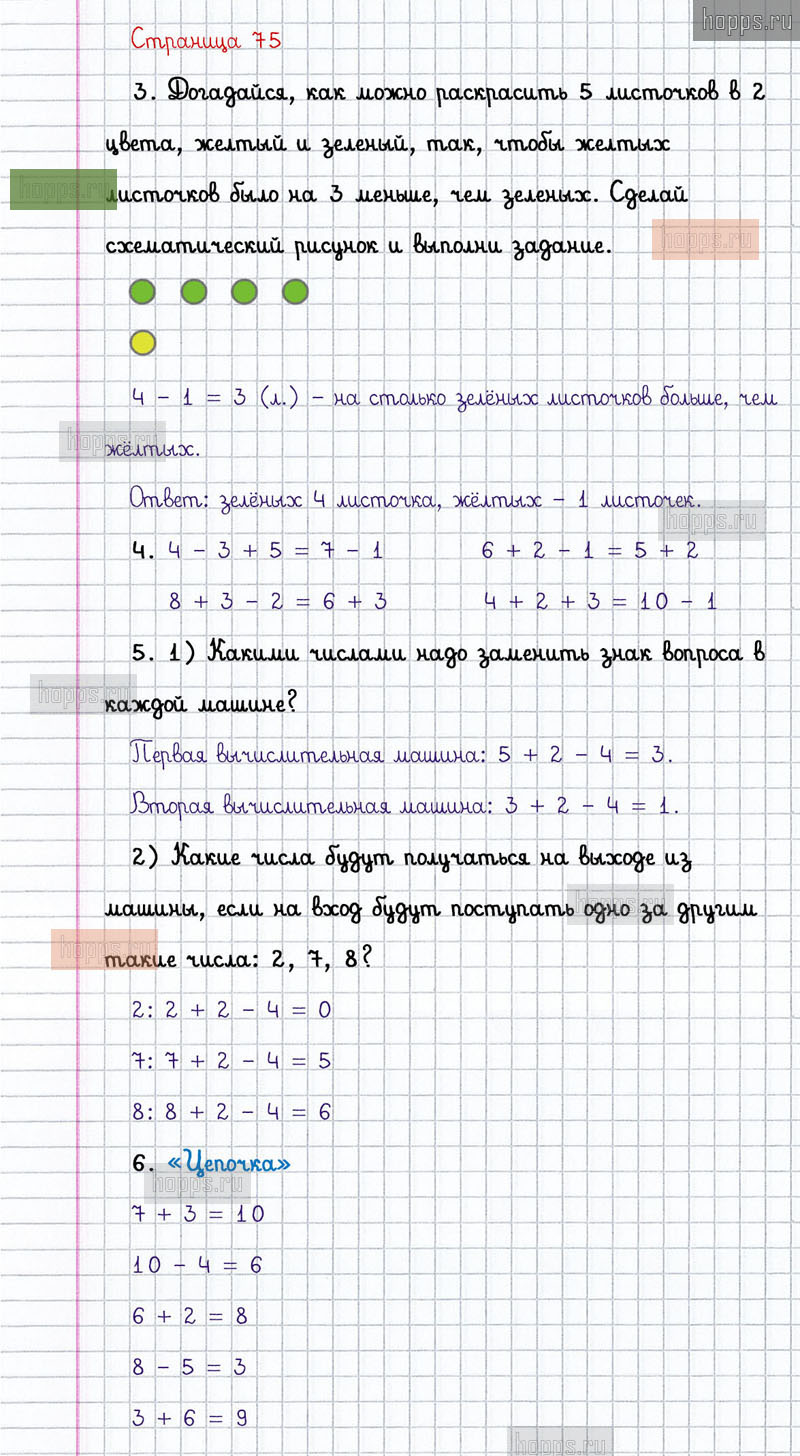 Подробные ответы к заданиям, расположенным на 75 странице 2 части учебника по математике авторов М.И. Моро, С.И. Волкова, С.В. Степанова для учащихся 1 класса.