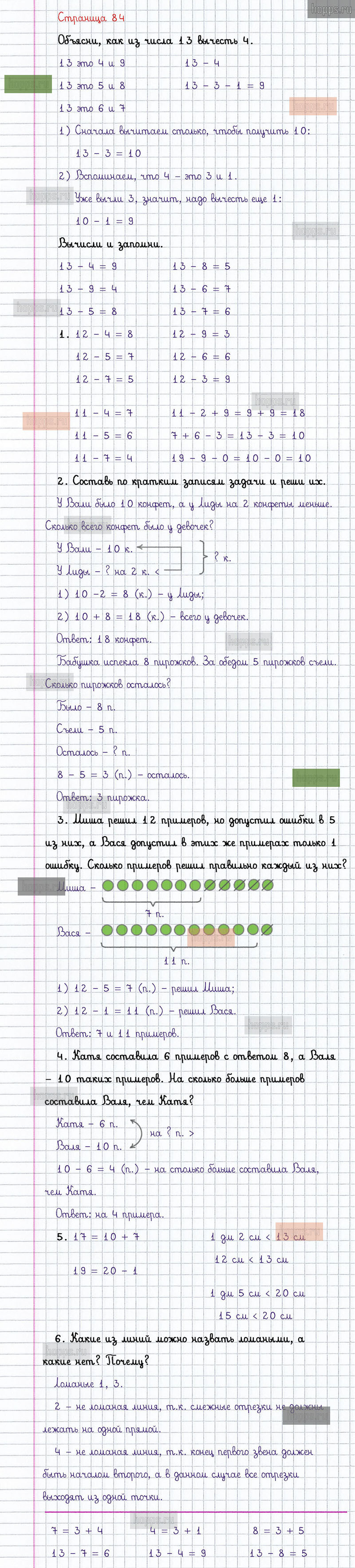 Подробные ответы к заданиям, расположенным на 84 странице 2 части учебника по математике авторов М.И. Моро, С.И. Волкова, С.В. Степанова для учащихся 1 класса.