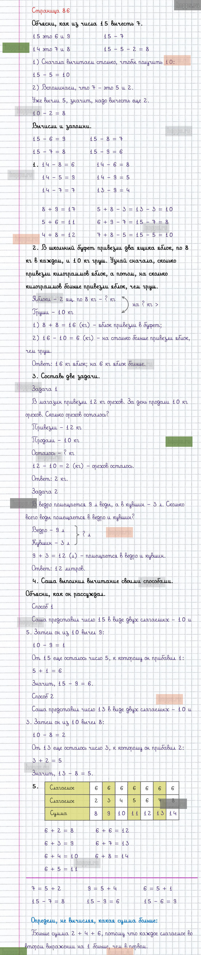 Подробные ответы к заданиям, расположенным на 86 странице 2 части учебника по математике авторов М.И. Моро, С.И. Волкова, С.В. Степанова для учащихся 1 класса.