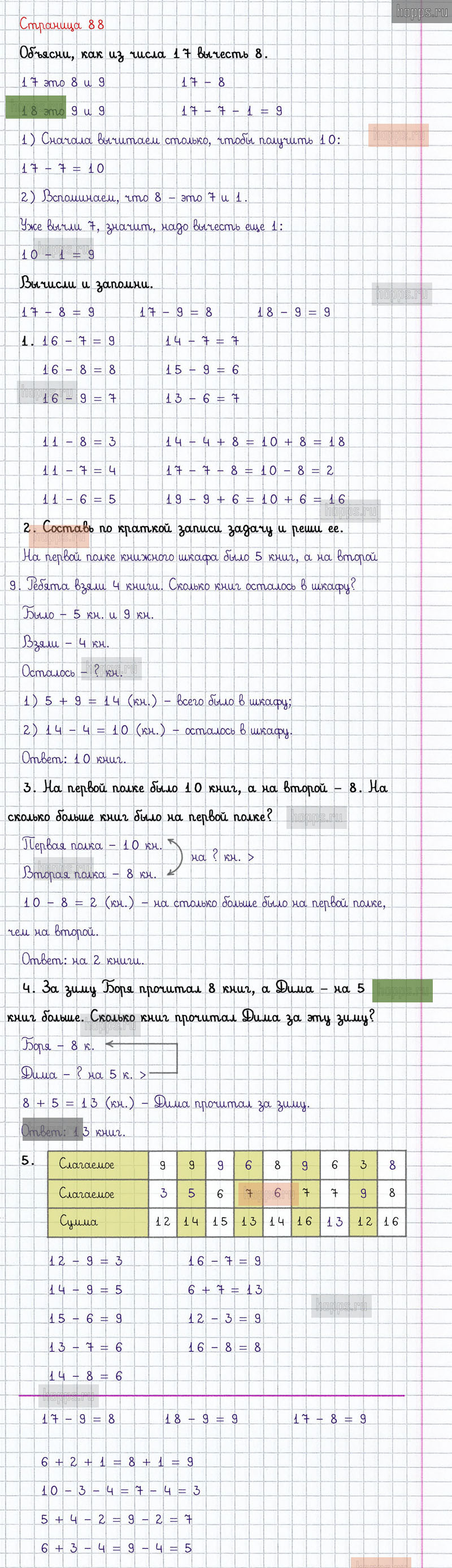 Подробные ответы к заданиям, расположенным на 88 странице 2 части учебника по математике авторов М.И. Моро, С.И. Волкова, С.В. Степанова для учащихся 1 класса.