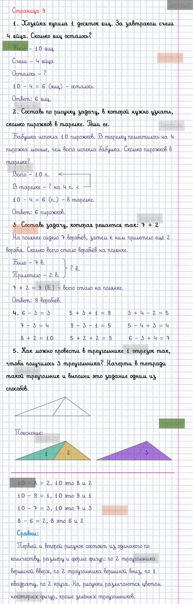Подробные ответы к заданиям, расположенным на 9 странице 2 части учебника по математике авторов М.И. Моро, С.И. Волкова, С.В. Степанова для учащихся 1 класса.