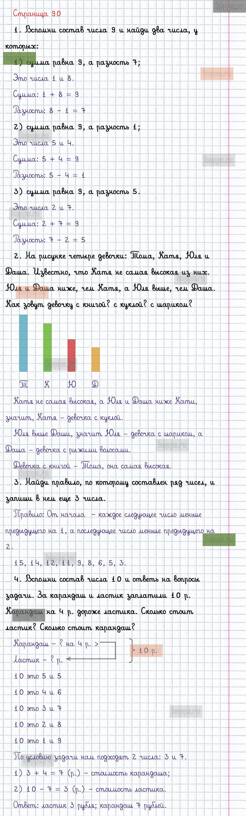 Подробные ответы к заданиям, расположенным на 90 странице 2 части учебника по математике авторов М.И. Моро, С.И. Волкова, С.В. Степанова для учащихся 1 класса.
