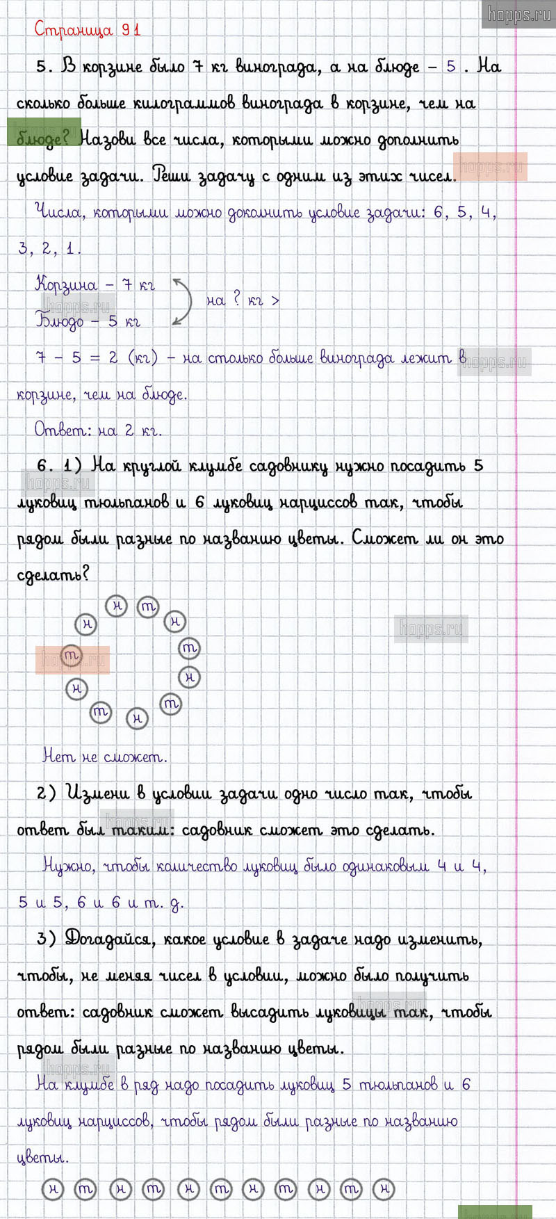Подробные ответы к заданиям, расположенным на 91 странице 2 части учебника по математике авторов М.И. Моро, С.И. Волкова, С.В. Степанова для учащихся 1 класса.