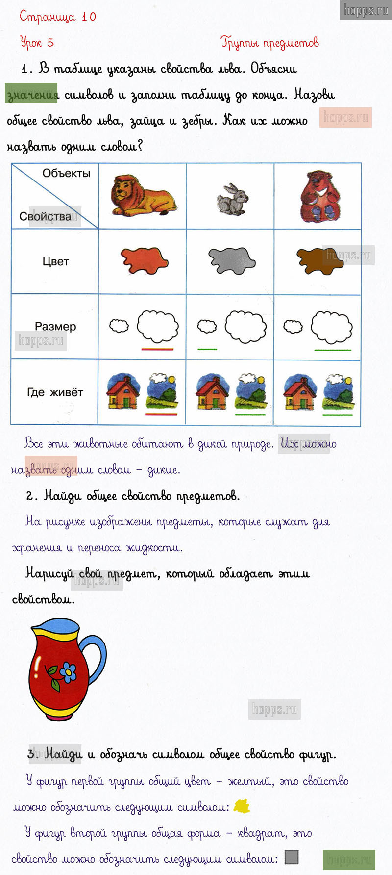 Подробные ответы к заданиям на 10 странице 1 части рабочей тетради по математике автора Л. Г. Петерсон для учащихся 1 класса. Урок 5. Группы предметов.