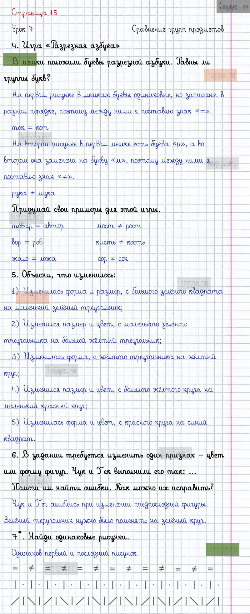 Подробные ответы к заданиям на 15 странице 1 части учебника по математике автора Л.Г. Петерсон для учащихся 1 класса. Урок 7. Сравнение групп предметов.