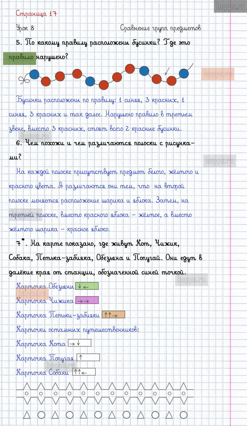 Подробные ответы к заданиям на 17 странице 1 части учебника по математике автора Л.Г. Петерсон для учащихся 1 класса. Урок 8. Сравнение групп предметов.