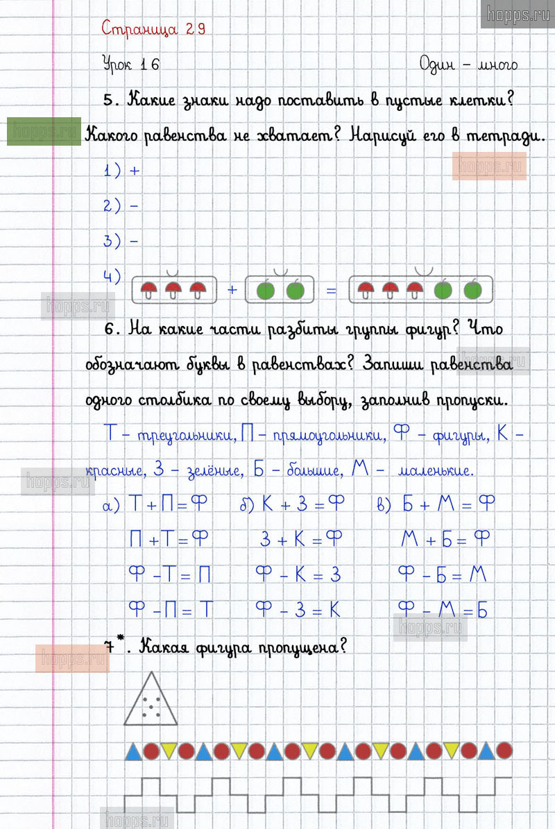 Подробные ответы к заданиям на 29 странице 1 части учебника по математике автора Л.Г. Петерсон для учащихся 1 класса. Урок 16. Один - много.